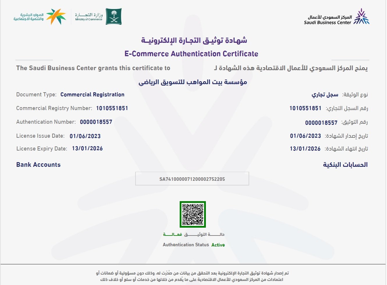 تحميل شهادة توثيق التجارة الإلكترونية –بيت المواهب